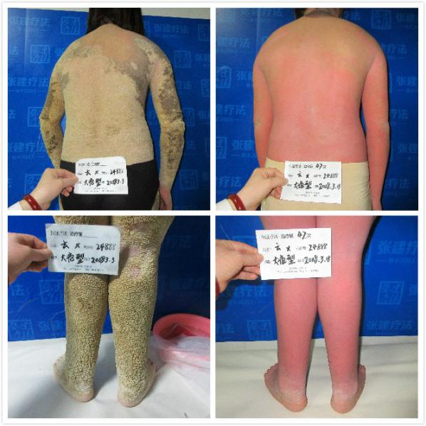 張建療法采用中醫(yī)外治的方式,通過熱力作用幫助魚鱗屑掉落。與此同時(shí),在治療的過程中,可使得毛孔充分?jǐn)U張,滋養(yǎng)皮膚后可恢復(fù)正常膚質(zhì) 在2006年和2016年先后獲得中國專利和美國專利 中國專利號:ZL03121032.5、美國專利號:US9,241,966 B1。